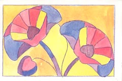 udsmykket med blyindfattede glasmisaikker med blomstermotiver.