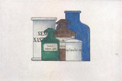 Krukker og glas fra det nedlagte Rådhusapotek, København. Efter